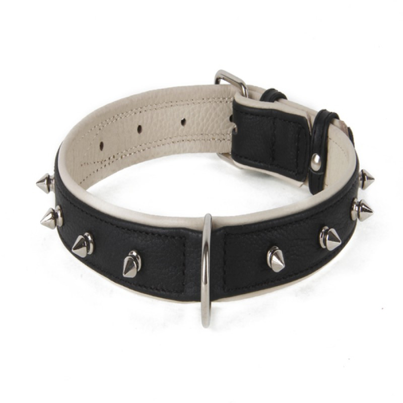 Нашийник 5327 35мм "Преміум" шкіряний подвійною з шипами