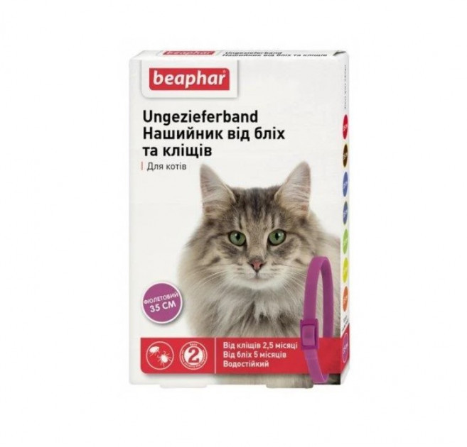 Нашийник Беафар для кішок від бліх і кліщів фіолетовий 35см Beaphar