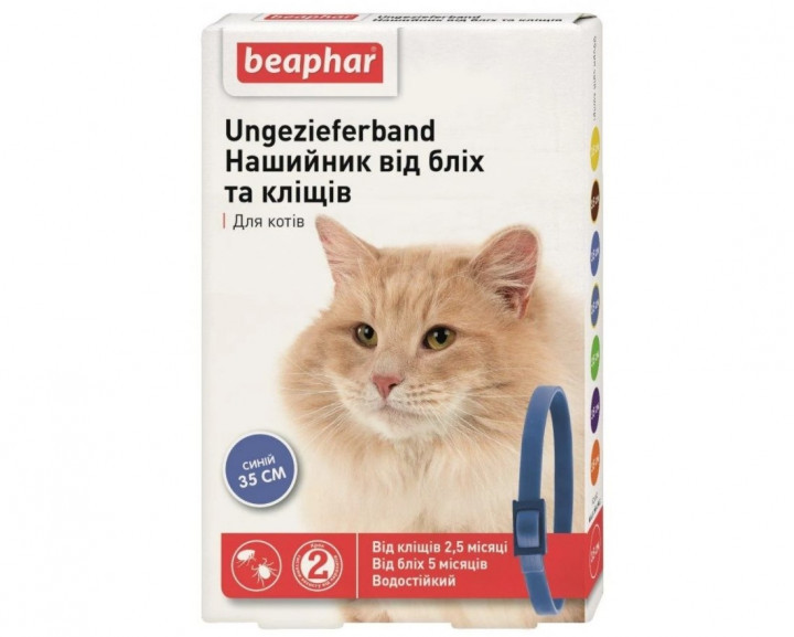 Нашийник Беафар для кішок від бліх і кліщів синій 35 см Beaphar