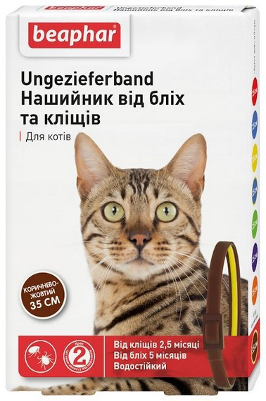 Нашийник Беафар від бліх та кліщів для кішок коричнево-жовтий 35 см Beaphar