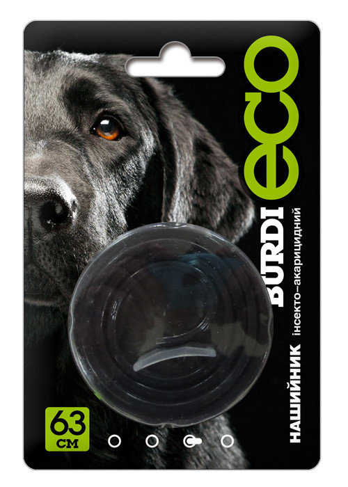 Нашийник Бурди ЕКО від бліх та кліщів для собак 63див / 12мм чорний