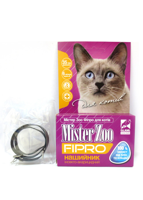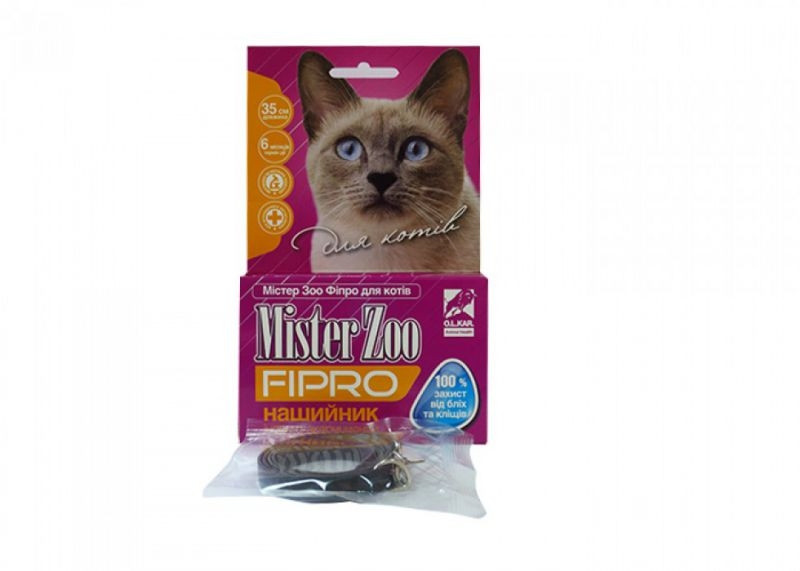 Нашийник Містер Зоо Фипро від бліх та кліщів для кішок 35 см / 12 мм (чорний)