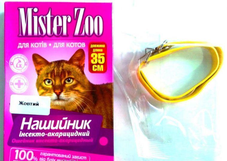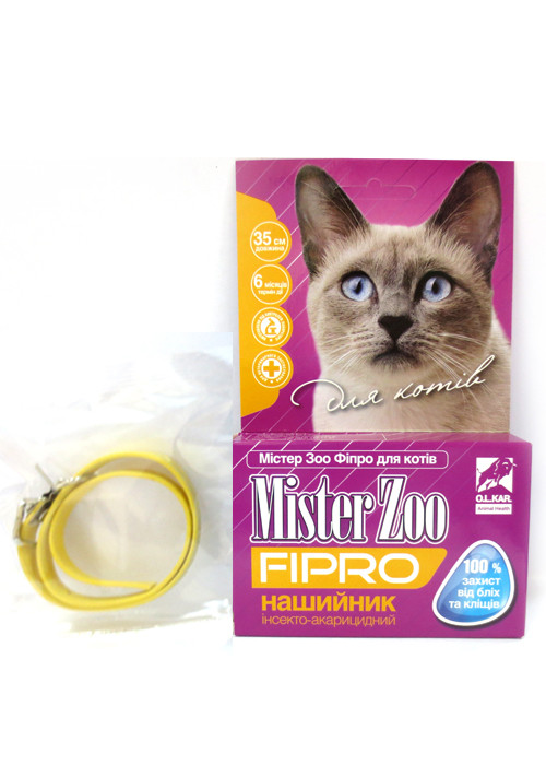 Нашийник Містер Зоо Фипро від бліх та кліщів для кішок 35 см / 12 мм (жовтий)
