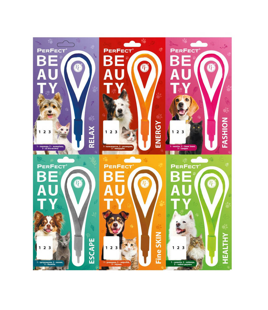 Яскравий полімерний нашийник PerFect BEAUTY має відмінну якість і стане не тільки прикрасою для вашого чотирилапого друга, але і може бути джерелом додаткової допомоги за певних життєвих обставин. До нашийника ми додали пробірки зі спеціально підібраним комплексом ефірних олій, які допоможуть вашому улюбленцю краще почуватися.