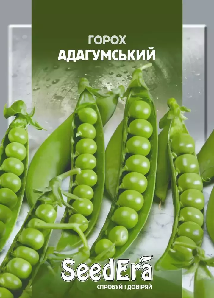 Горох овочевий Адагумський – перевірений сорт середнього терміну дозрівання, збирання врожаю проводять через 50-55 днів після появи сходів. Стебла здатні досягати до 90 см. На них формуються боби середніх розмірів 6-8 см. Стручки прямі, темно-зеленого забарвлення із загостреною верхівкою.