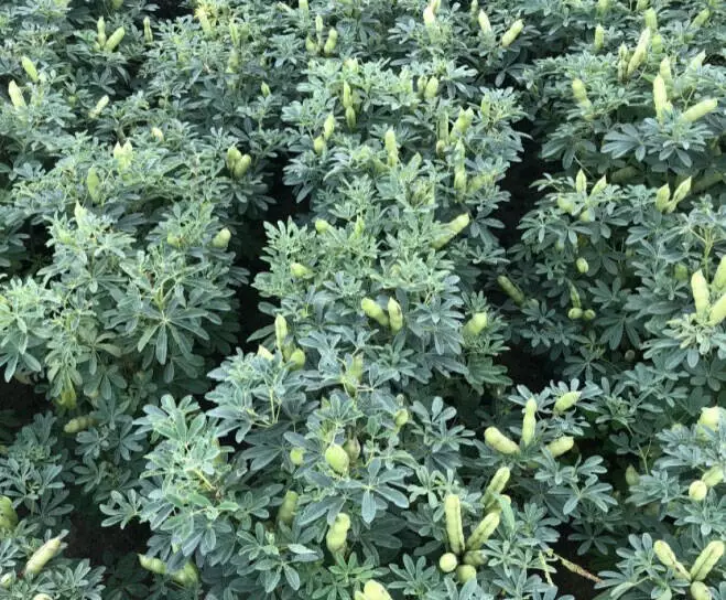 Вміст білка у насінні становить до 40,5 %, олії – до 11,0 %, алкалоїдів – 0,025%.