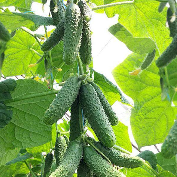 Рослина досить потужна. Плодоношення настає через 40-45 днів після посадки. Плоди однорідні, крупногорбкуваті, темно-зеленого кольору. В одній пазусі формується 3-5 плодів довжиною 8-12 см. Внутрішня структура плоду з маленькою насіннєвою камерою, має відмінні смакові якості. М'якоть дуже соковита, хрустка, не має гіркоти.