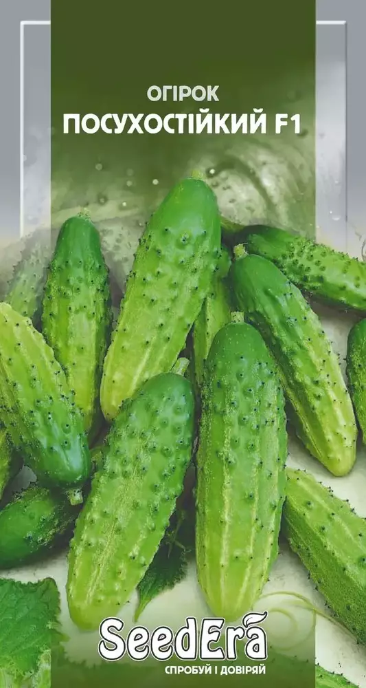 Огірок Посухостійкий - середньостиглий, високоврожайний гібрид. Рослина довгоплетиста, переважно жіночого типу цвітіння. Зеленці довжиною 9-11 см, масою 70-90 г, циліндричні, дуже смачні, хрусткі, соковиті. Гібрид стійкий до вірусу огіркової мозаїки, борошнистої роси. Використовують для консервування та споживання у свіжому вигляді.