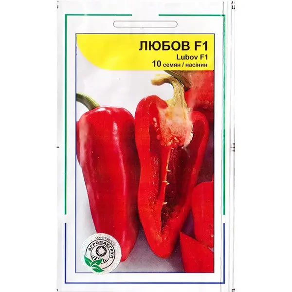 Перець солодкий Любов F1 – середньоранній, невибагливий гібрид, представлений фахівцями насіннєвої компанії Syngenta Seeds, Нідерланди. Демонструє відмінний результат при вирощуванні у відкритому ґрунті. Рослина низькоросла, розлога, з хорошою енергією зростання і густим, рясним листям. Формує 10-12 плодів. Відрізняється високою пластичністю до умов вирощування. Не потребує пасинкування та інтенсивної агротехніки. Має стійкість до вершинної гнилизни і вірусних захворювань перцю.