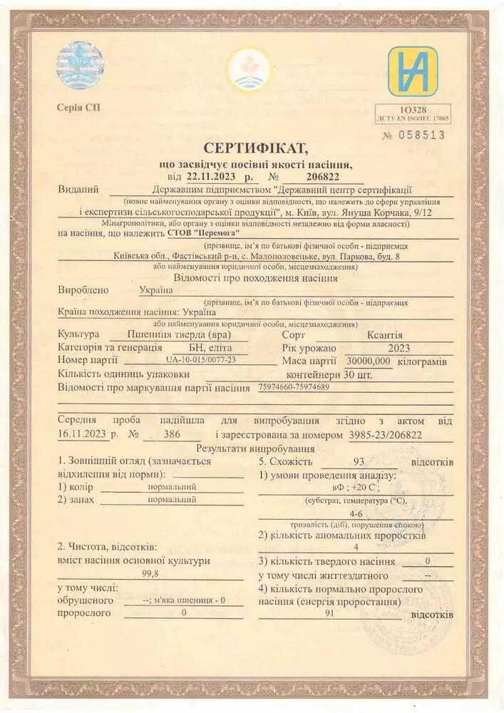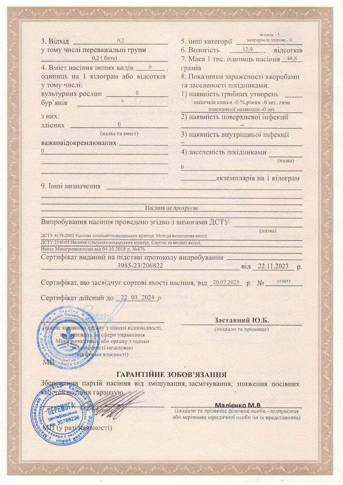 Оригінатор – Інститут рослинництва ім. В.Я. Юр'єва НААН. Рік реєстрації – 2019.