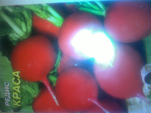 Насіння редиски Краса - це ранньостиглий сорт. Коренеплоди округлі, красивого кармінно-червоного кольору. Шкірка тоненька, ніжна. Мякуш прозоро-білий, лагідний на смак. Сорт призначений для вирощування у відкритому і захищеному грунті. Висівають рано навесні в декілька строків через 10-12 днів, літній посів проводять в кінці липня - на початку серпня для осіннього споживання. Холодостійка культура, переносить заморозки до -2-3 градусів. Найкраща температура для росту 18-20 градусів.