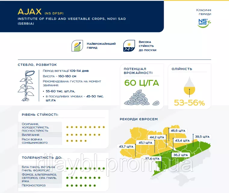 сербського оригинатора НС Семі (Сербія). Гібрид соняшнику Аякс
