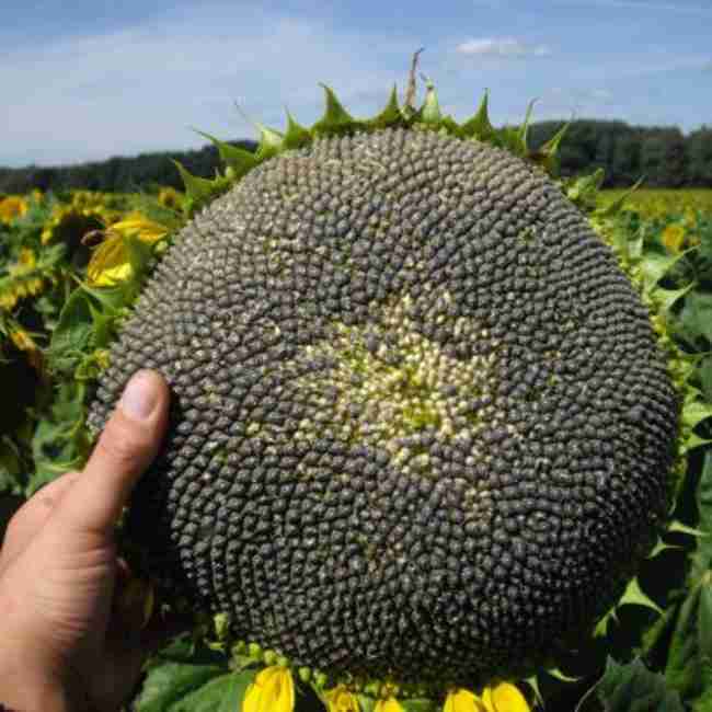 Соняшник "Sandera" (Сандера) резистентний до 7 расам вовчка (А-G), з високими посівними якостями та високим потенціалом, посухостійкий.