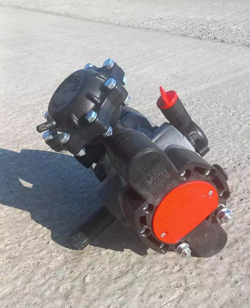 Комплектуюча частина для навісного обприскувача, головний робочий його елемент-двухпоршневой насос Tolveri PU - 2/120 (Толвері Р120, Польща). Використовується такий насос на ОП-600, ОП-800, ОП-1000 та інші обприскувачі з шириною штанги до 15 метрів. Мембранно-поршневий механізм забезпечує відмінну подачу тиску на секції, а наявність голчастого і кулькового підшипників сприяє тривалому терміну експлуатації.