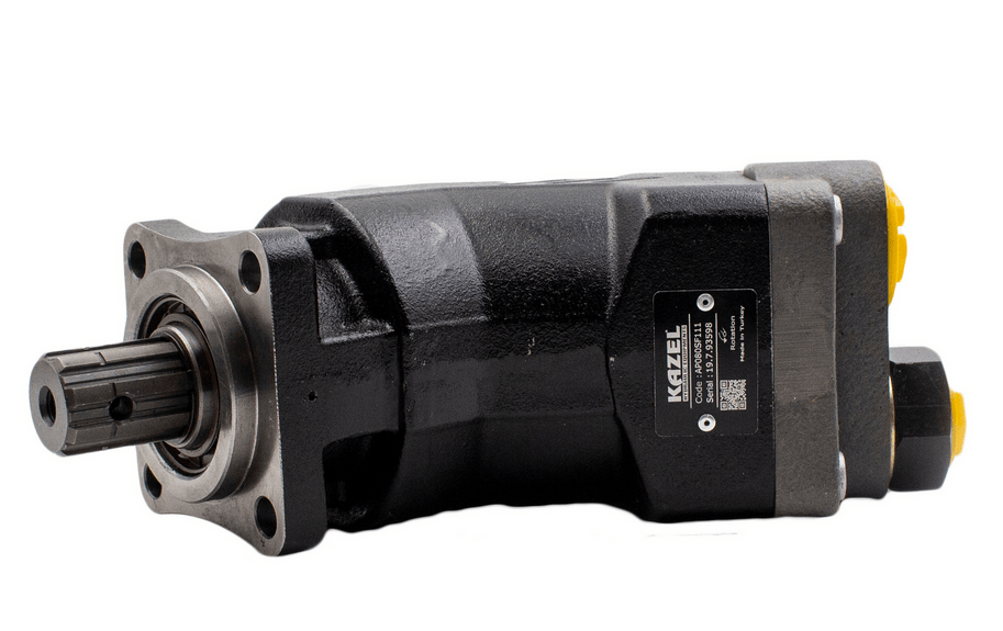 Аксіально-поршневий гідравлічний насос із робочим об'ємом 32 см3/об. Номінальний тиск — 350 барів, максимальний тиск, який може розвинути ця модель — 400 барів. Частота обертання насоса від 2750 до 3900 об/хв. Напрямок обертання насоса має відповідати напряму обертання КОМ. Зазвичай Kazel постачає насоси з лівим обертанням вала, але дуже просто його змінити на праве обертання. Використовувати з мінеральною гідравлічною оливою.