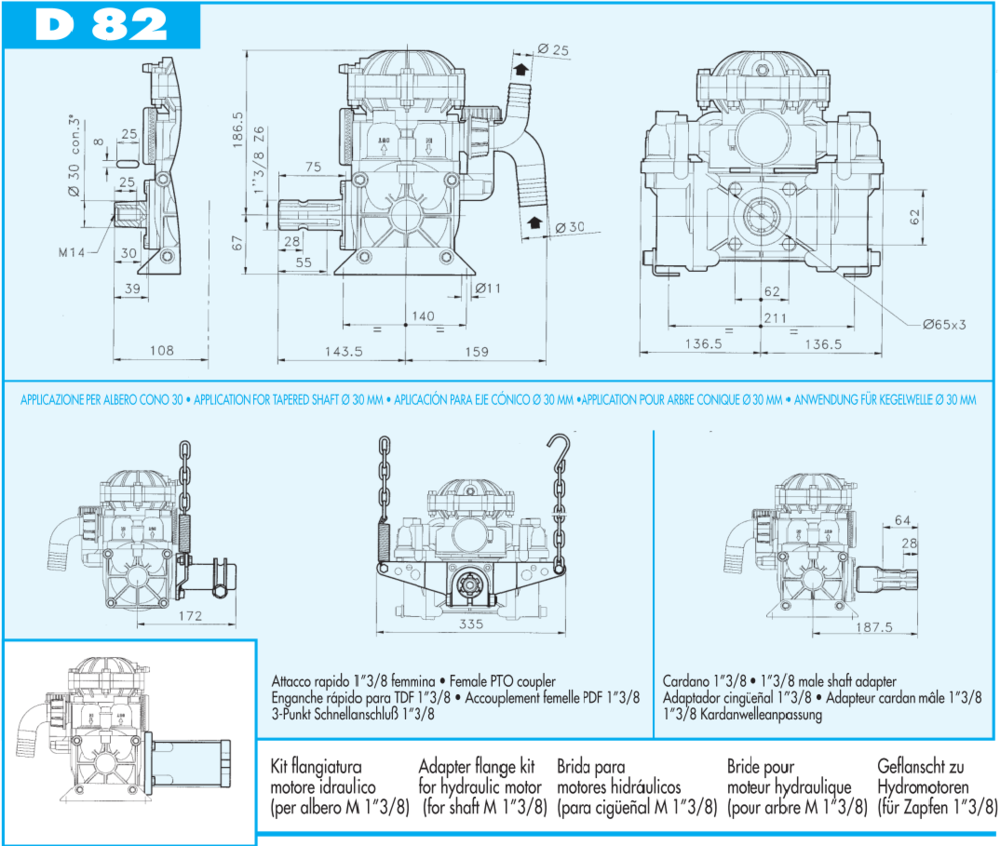 Насос D - 82 встановлюється на штангові навісні обприскувачі з шириною захвата від 8 до 16 м