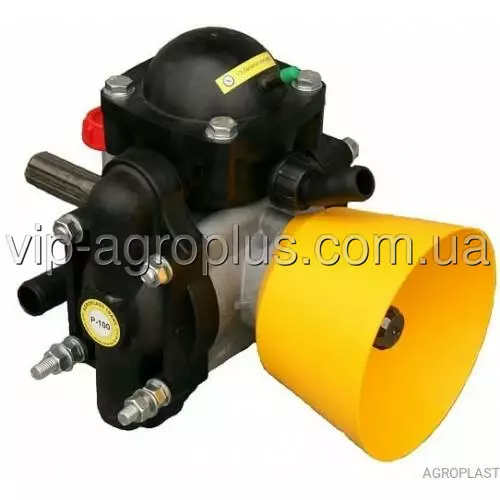 Даний мембранно-поршневий насос застосовується для садових обприскувачів. Додаткові елементи валу відбору потужності дозволили підключення вентилятора до вирощування саду.