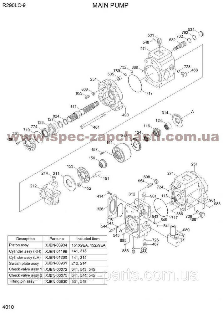 Гідронасос Kawasaki K5V140DTP 31Q8-10010 складається з наступних елементів: