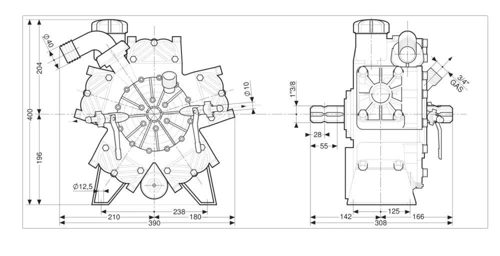 Насос M135S встановлюється на вентиляторних (садових) обприскувачах