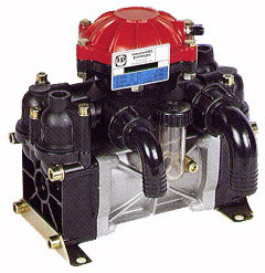 Картер насоса, в котором установлены вал, подшипники, и поршни отделен мембраной от камеры, в которой находится рабочая жидкость. Мембрана изготовлена из специального материала "Desmopan" или специальной химически стойкой резины. Контакт металлических частей насоса с рабочей жидкостью отсутствует