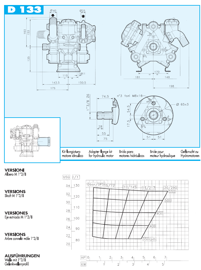 Насос D - 133 встановлюється на штангові обприскувачі з шириною захвата від 16 до 18 м