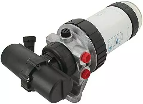 Встановлюється зверху корпус паливного фільтра. Працює під час живлення 12V, 4,5A. Об'єм прокачування 145 літрів на годину. У разі виходу з ладу необхідно замінити всю частину паливного насоса. Цей електричний паливний насос низького тиску (ТННД) використовується на такій техніці.