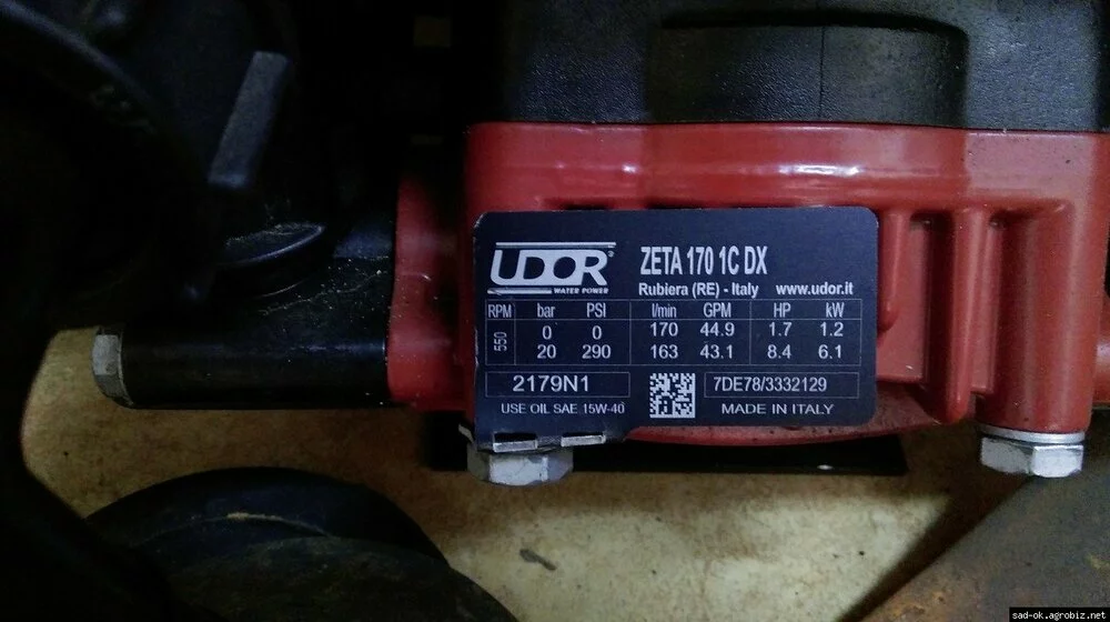Итальянский насос Udor Zeta 170 1c DX пропускная способность 170 л. за 1 мин.