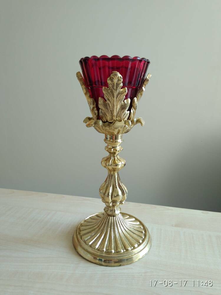 Настільна лампада золотистого кольору з різними декоративними елементами. Виготовлена з високоякісного матеріалу - латунь.
