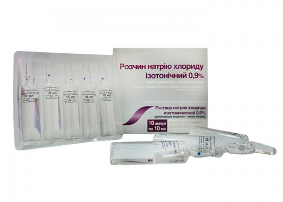 100 мл препарату містять діючу речовину: натрію хлорид – 0,9 г; допоміжні речовини: вода для ін'єкцій.