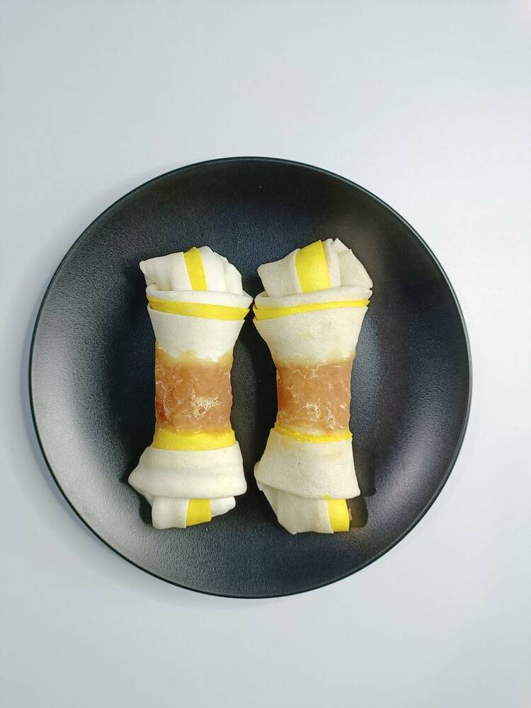 Сиром'ятна шкіра 66.69%, м'ясо курки 29.5%, крохмаль 1.5%, сорбіт 1%, гліцерин 1%, сіль 0,3%, пігмент 0.01%.