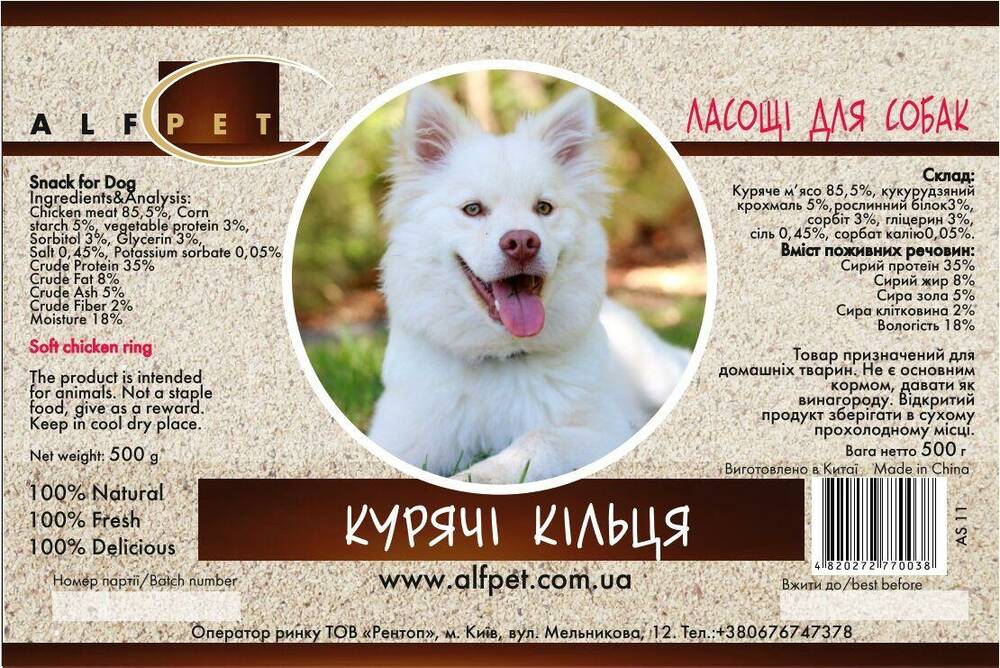 Натуральні ласощі для собак AlfPet (АльфПет) AS11 Курячі кільця 500 г