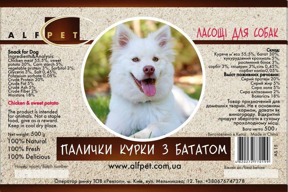 Натуральні ласощі для собак AlfPet (АльфПет) AS15 Палички курки з бататом 500 г