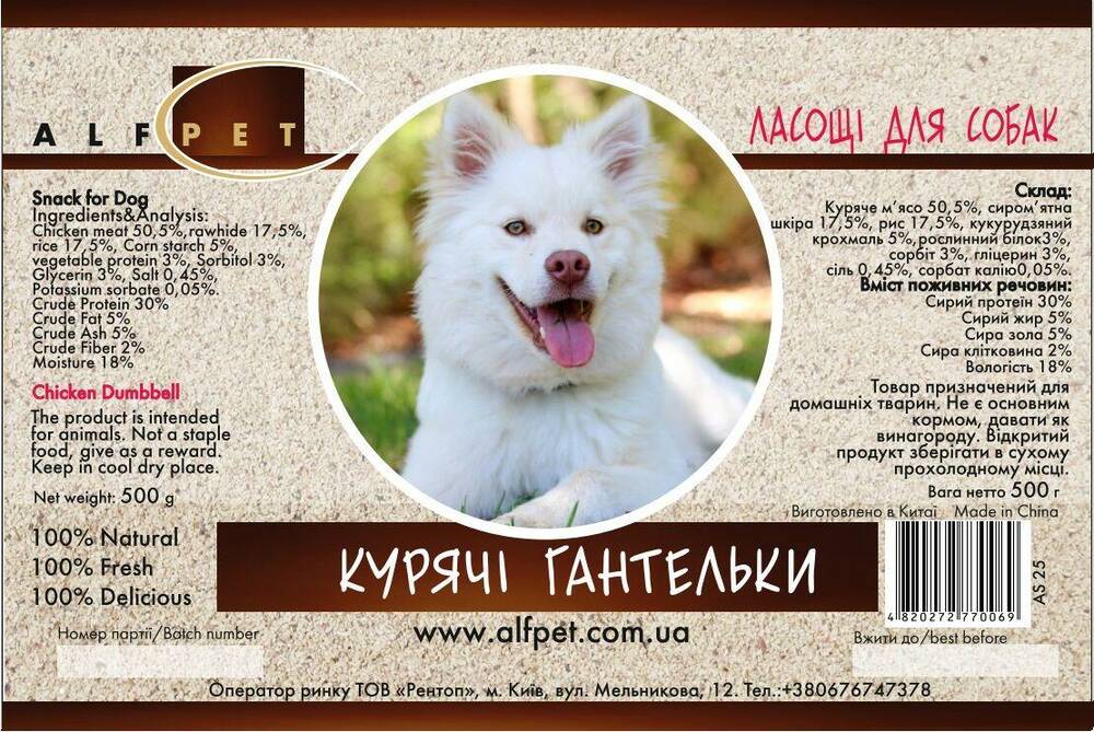 Натуральні ласощі для собак AlfPet (АльфПет) AS25 Курячі гантельки 500 г