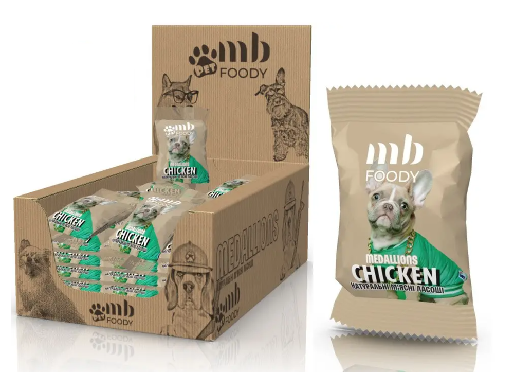 Натуральні ласощі для собак медальйони MB Foody Pet шоубокс 400 г з куркою (в упаковці 100 шт)