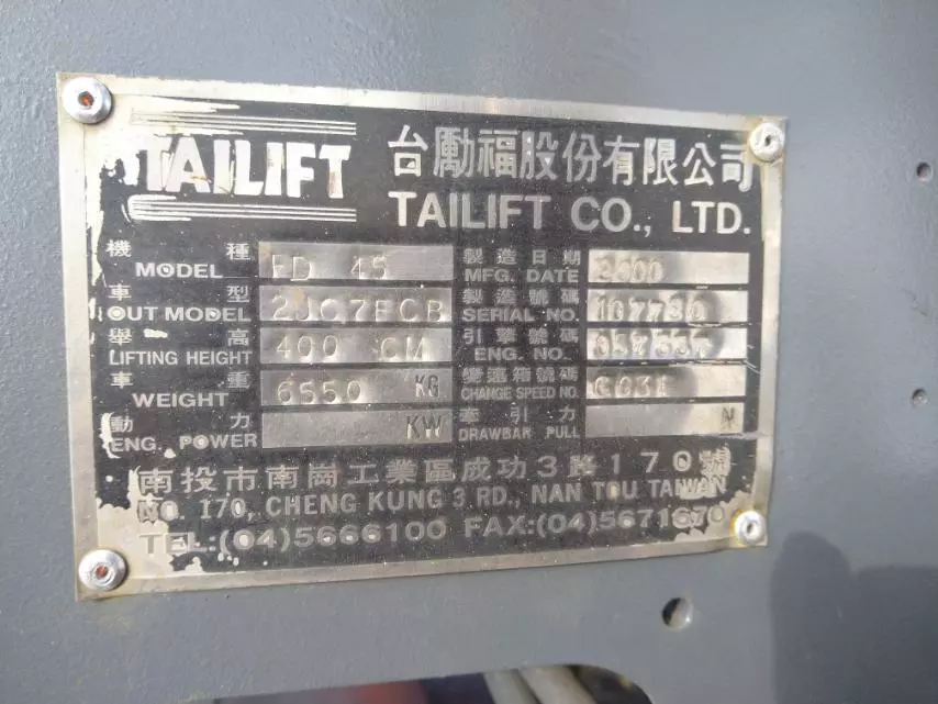 Погрузчик Tailift FD45, STD - 2000 года выпуска. Дизельный ,вилочный погрузчик высотой подъема 4 метра.