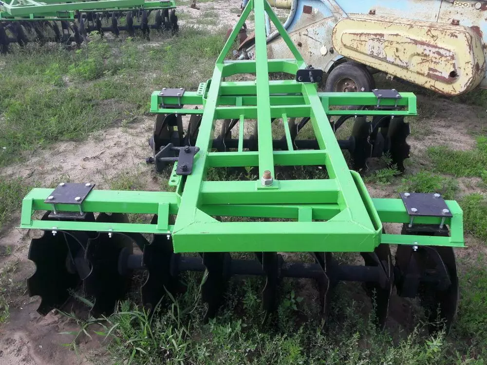Навесная 2-х секционная дисковая борона ширина захвата 1,8 м серии U363 фирмы Bomet (Польша) предназначена для предпосевной обработки плотных вспаханных на зиму почв (кроме каменистых) с таким содержанием влаги в почве, которое позволило бы произвести их правильную обработку. Дисковая борона предназначена также для разрывания и размельчения дернистых отвалов после пахоты лугов других пастбищных угодий, а также для выполнения лущения стерни непосредственно после срезания растений. Дисковые бороны могут использоваться для резки и заделывания навоза после разбрасывания зеленых удобрений малой и средней величины. Машина может быть использована для перемешивания с землей минеральных удобрений и извести. Работа может выполняться на склонах до 8,5 градусов.