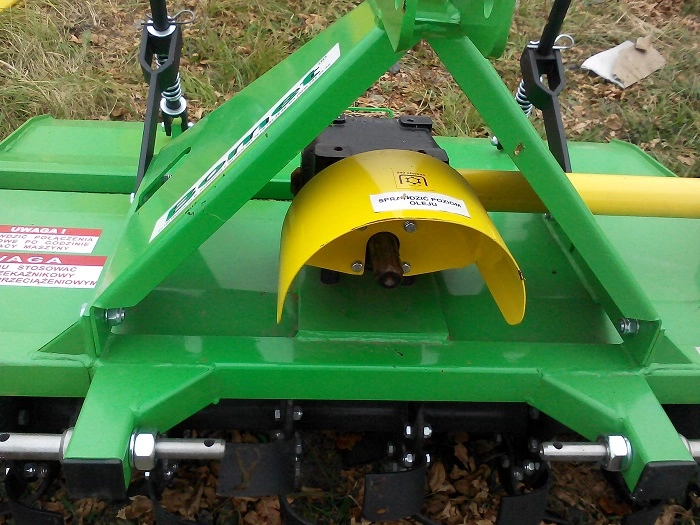 На вращающемся рабочем вале на расстоянии 225 мм закреплены диски с пластинчатыми угловыми ножами. Интенсивность взламывания глыб регулируется подвижным задним кожухом. Поднятие кожуха увеличивает размеры частиц измельченной почвы, а его опускание вызывает уменьшение частиц измельченной почвы в результате ударения почвы о кожух. Частота вращения фрезы 265 об/мин. Для привода почвофрезы необходимо применять шарниро-телескопический вал с предохранительной муфтой для обеспечения прочности и надежности передачи.