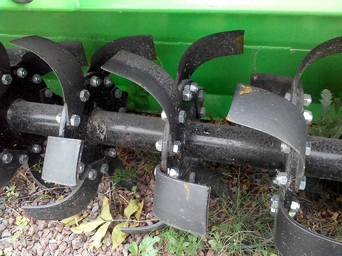 На вращающемся рабочем вале на расстоянии 225 мм закреплены диски с пластинчатыми угловыми ножами. Интенсивность взламывания глыб регулируется подвижным задним кожухом. Поднятие кожуха увеличивает размеры частиц измельченной почвы, а его опускание вызывает уменьшение частиц измельченной почвы в результате ударения почвы о кожух. Частота вращения фрезы 265 об/мин. Для привода почвофрезы необходимо применять шарниро-телескопический вал с предохранительной муфтой для обеспечения прочности и надёжности передачи.