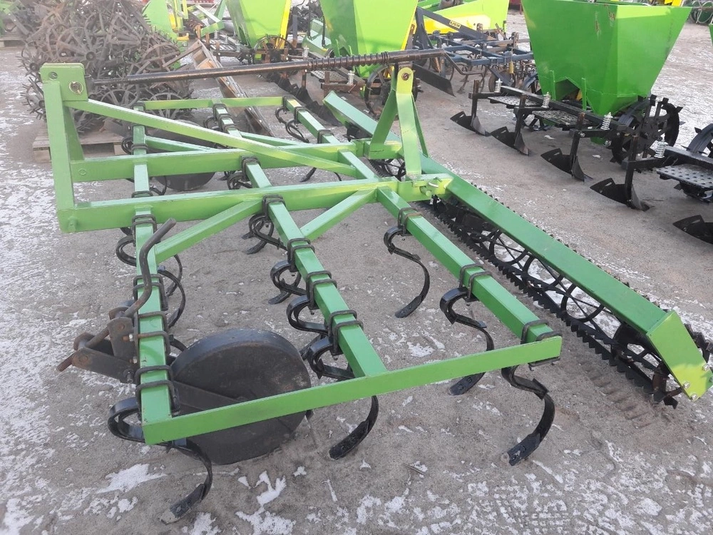 В предложении доступны культиваторы с креплением пружинных стоек при помощи устанавливаемых накладок. Стойки культиватора креплятся на раме в 3 ряда на расстоянии 140 мм и окончены легко заменяемыми рыхлительными долотами. Основным оборудованием культиваторов являются два опорные колеса, устанавливающие глубину работы.