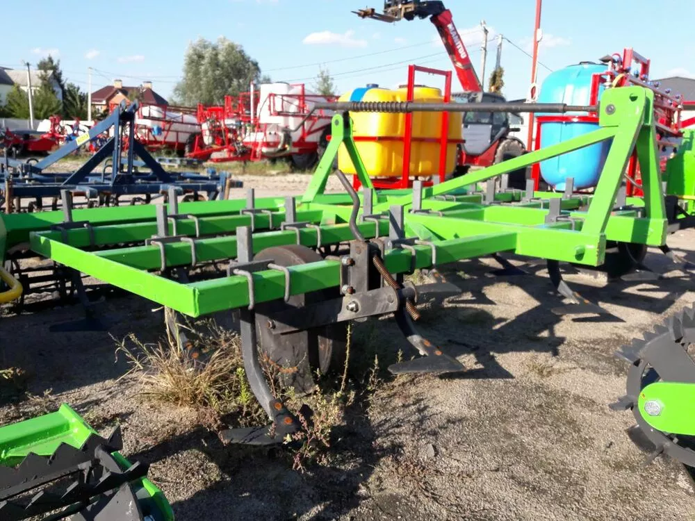 В предложении доступны культиваторы с креплением пружинных стоек при помощи устанавливаемых накладок. Стойки культиватора креплятся на раме в 3 ряда на расстоянии 140 мм и окончены легко заменяемыми рыхлительными долотами. Основным оборудованием культиваторов являются два опорные колеса, устанавливающие глубину работы.
