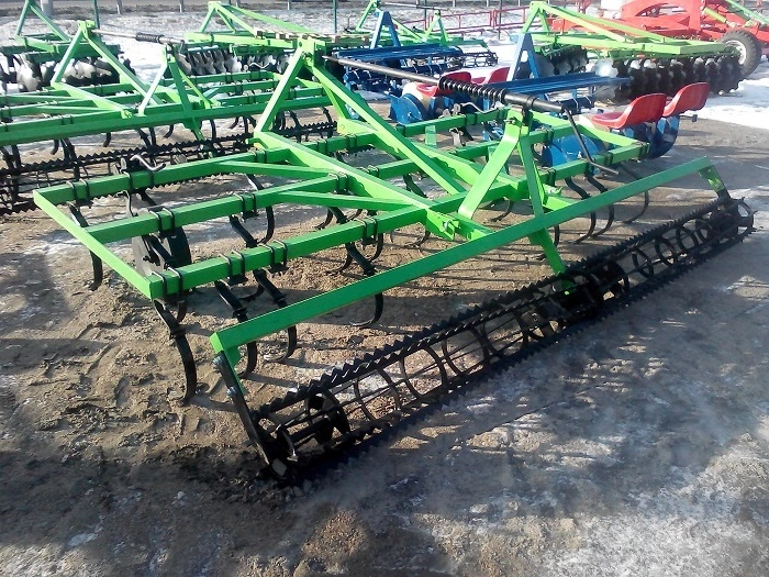 В предложении доступны культиваторы с креплением пружинных стоек при помощи устанавливаемых накладок. Стойки культиватора креплятся на раме в 3 ряда на расстоянии 140 мм и окончены легко заменяемыми рыхлительными долотами. Основным оборудованием культиваторов являются два опорные колеса, устанавливающие глубину работы.