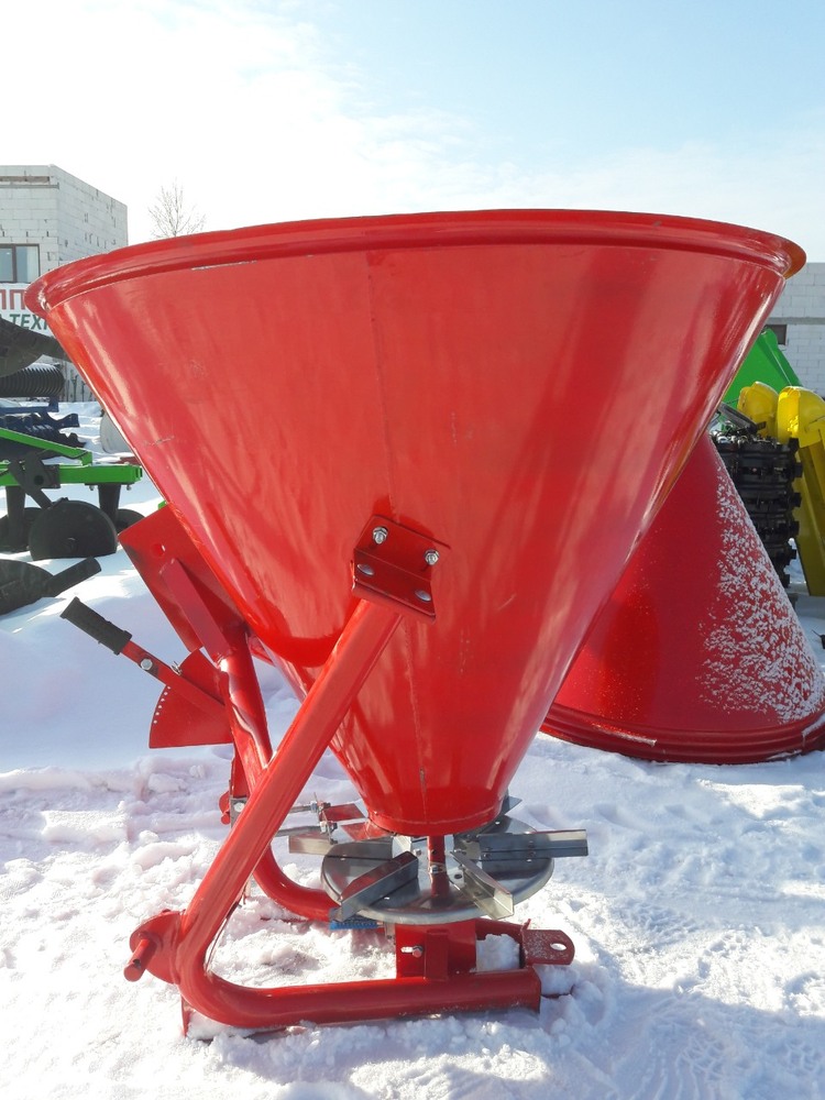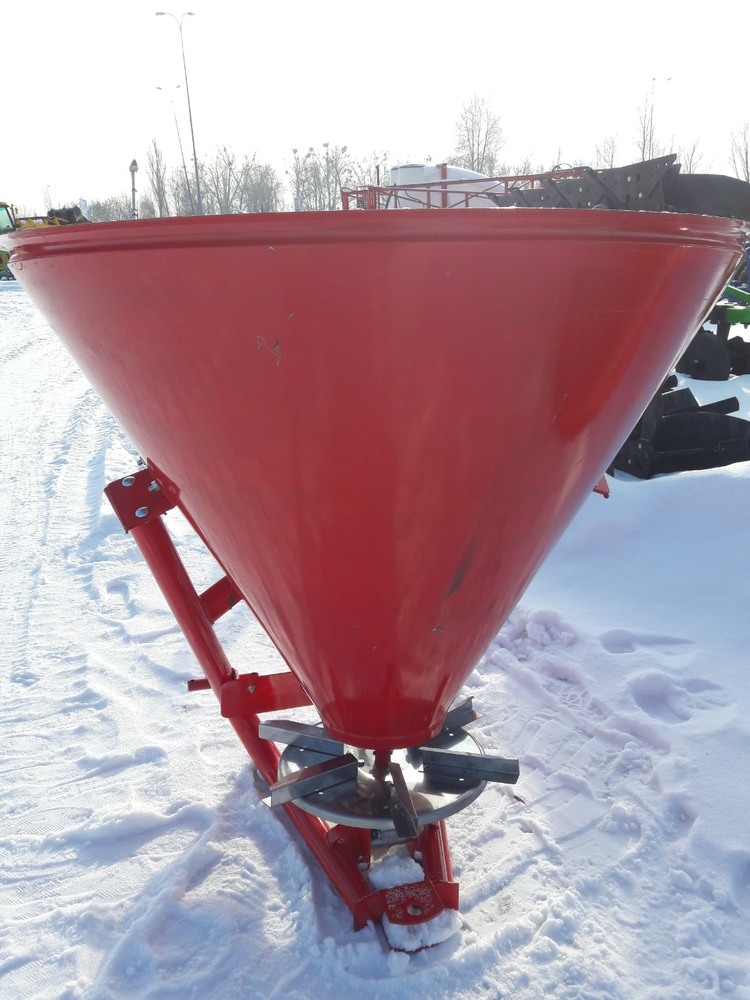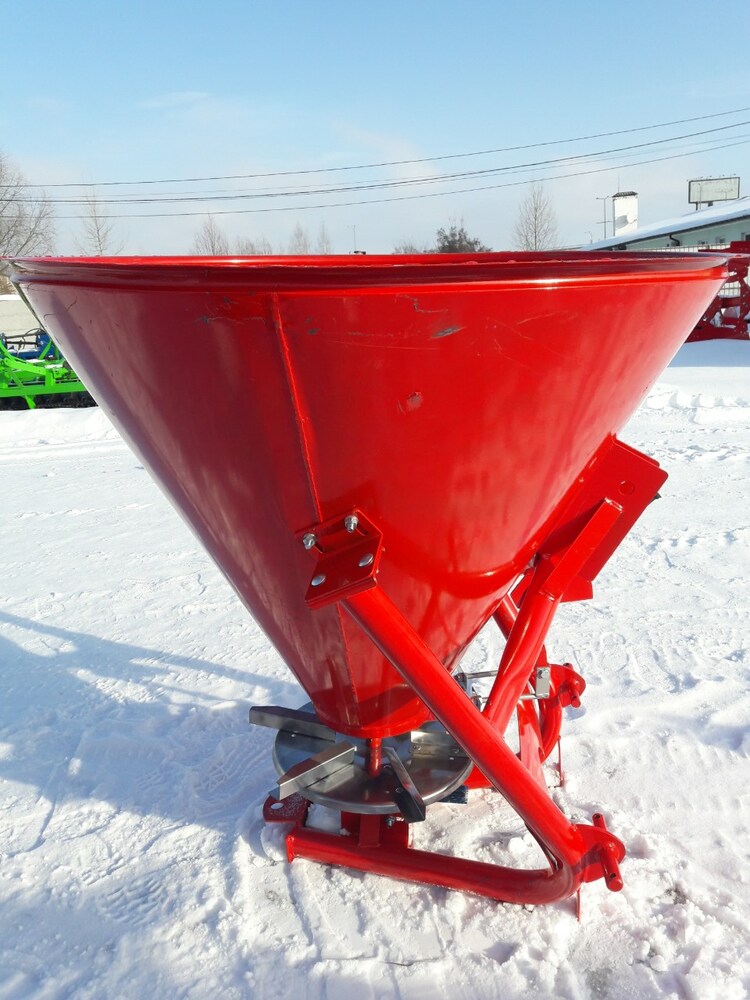 Разбрасыватель минеральных удобрений (Польша) тракторный навесной применяется для поверхностного внесения минеральных удобрений в гранулированном виде, а также для посева зерновых культур и подкормки в период вегитации, что влияет на урожайность. Загрузка машины производится в полевых условиях. Доза внесения удобрений зависит от регулирования механизма управления дозирующими заслонками и рабочей скорости движения.