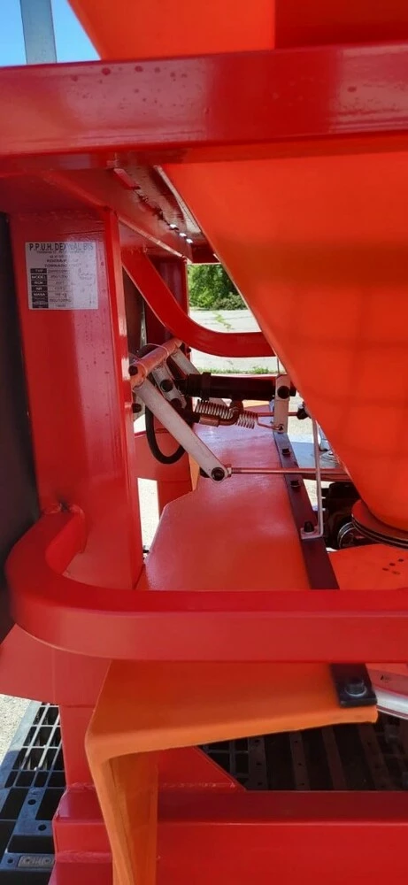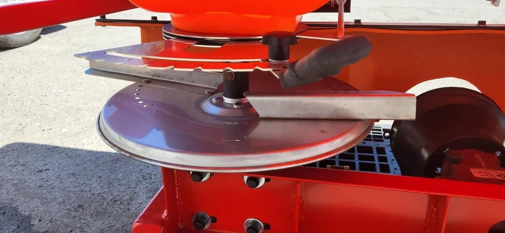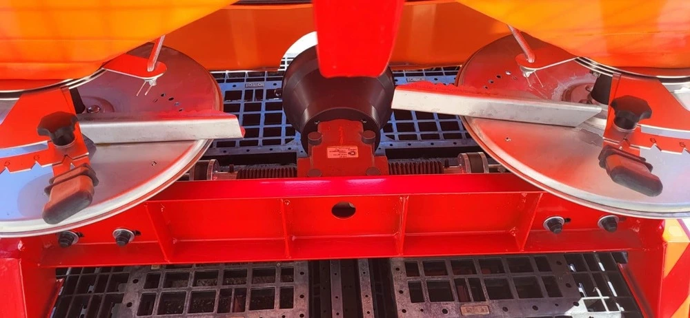 Внесення добрив відбувається завдяки 2 дискам з 2 лопатями. Диски отримують привід додаткового двигуна агрегату через шарнірно-телескопічний вал, центральну передачу і дві кутові передачі.