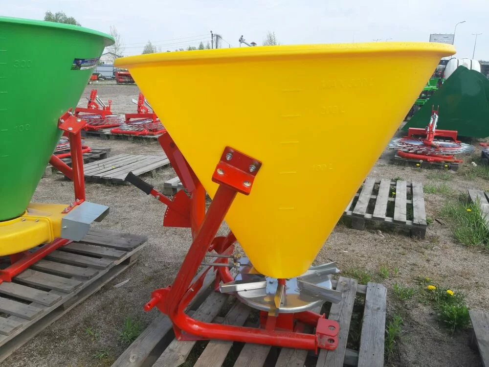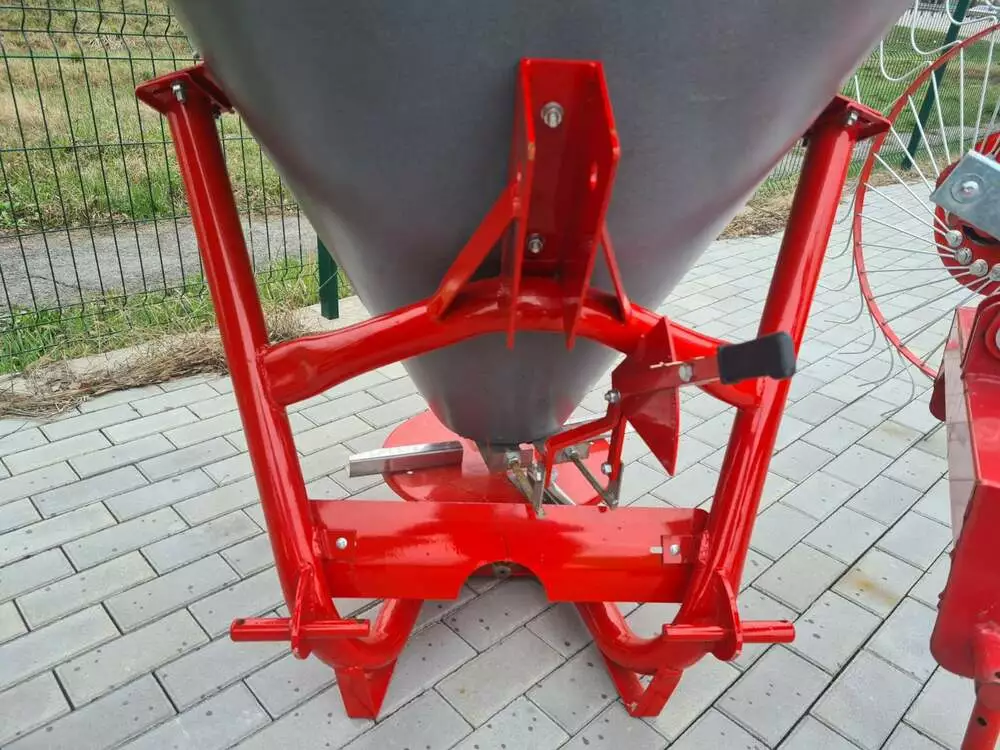 Розкидач мінеральних добрив (Польща) тракторний навісний застосовується для поверхневого внесення мінеральних добрив в гранульованому вигляді, а також для посіву зернових культур і підживлення в період вегетації, що впливає на врожайність. Завантаження машини проводиться у польових умовах. Доза внесення добрив залежить від регулювання механізму керування дозуючими заслінками і робочої швидкості руху