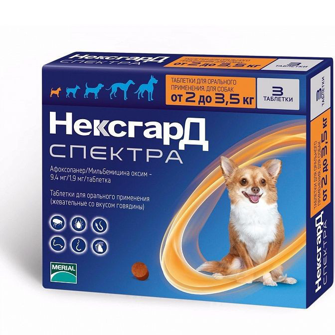 Нексгард Спектра 2-3.5 кг таблетки від бліх кліщів та гельмінтів для собак №3 таблетки Merial