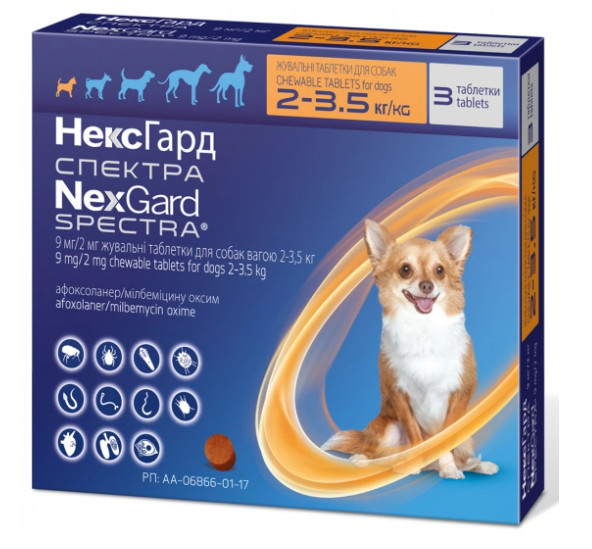 Нексгард Спектра 2-3.5 кг таблетки від бліх кліщів, гельмінтів для собак (1 таблетка) Merial (термін до 10.2025 р)