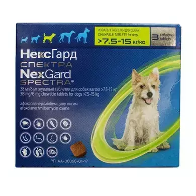НексГард Спектра Таблетки проти бліх, кліщів та гельмінтів для собак 7,5 - 15кг, 3шт