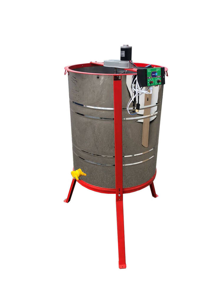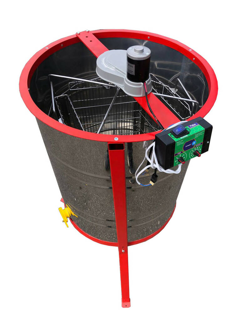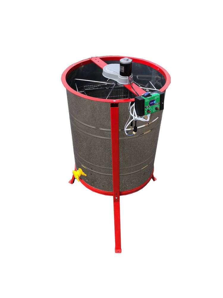 Нержавіюча Медогонка 4-х Рамкова Поворотна. Касети зварені, пофарбовані порошковою фарбою. З ЕЛЕКТРОПРИВОДОМ "Pulse". З підставкою