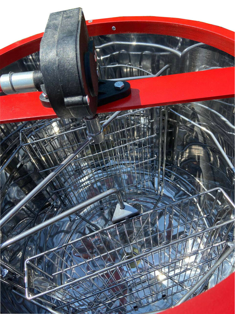 Нержавіюча медогонка з поворотом касет 2-х рамкова, касета зварена, пофарбована порошковою фарбою. З підставкою