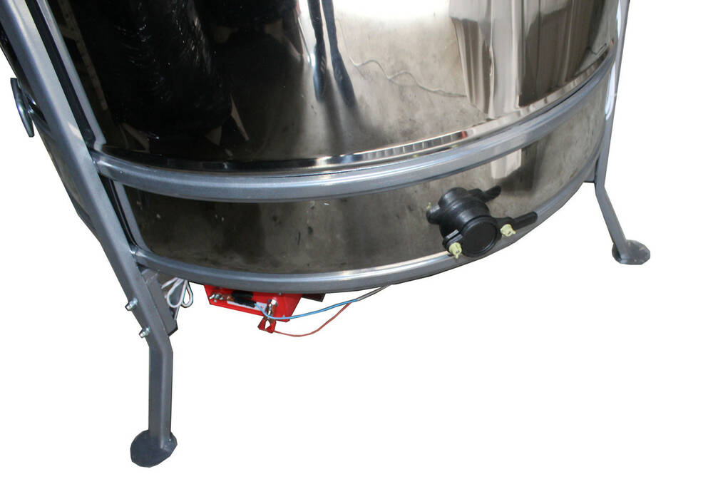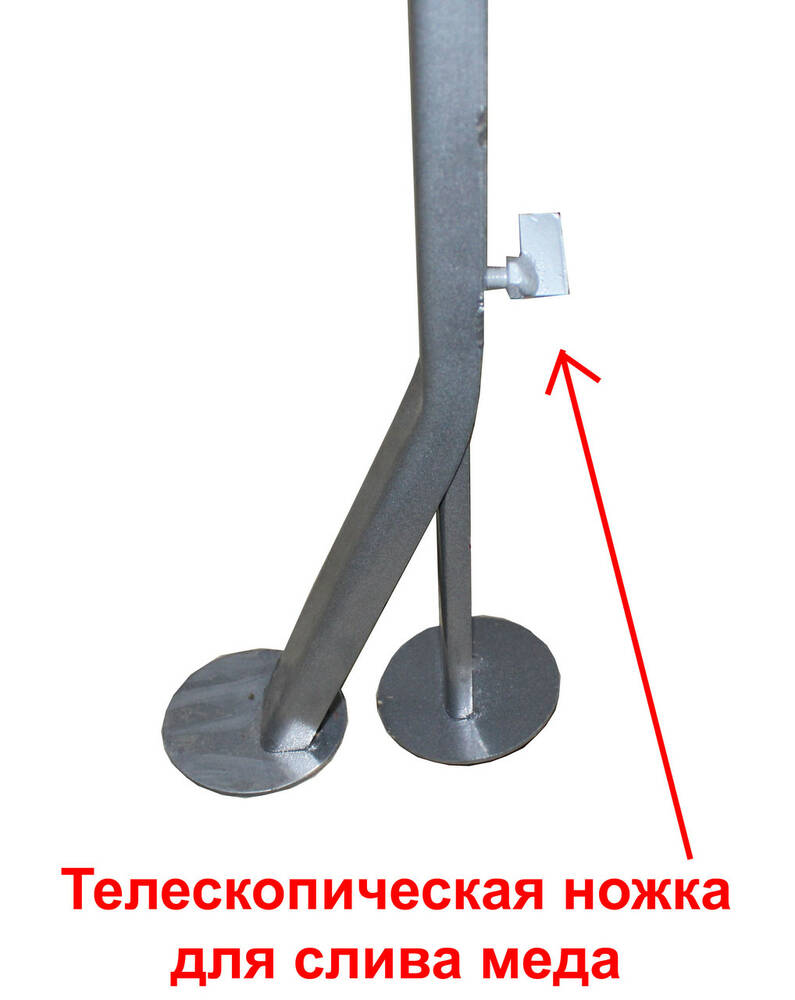 Підставка виготовлена з ліста чорної сталі товщиною 2,5 мм і забарвлена порошковою фарбою. На підставці передбачена 1 телескопічна ніжка для зручного зливу залишків меду після закінчення відкачування.